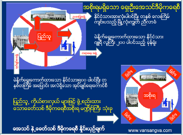 အခုလို (၂၁) ရာစုေခတ္ထဲကိုကြ်န္ေတာ္တို႕ခ်ည္းနင္း၀င္ေရာက္ေနၿပီး လူသားမ်ိဳးဆက္ရဲ႕ ဒီမိုကေရစီေရး လႈပ္ရွားမႈေတြ ဟာလည္း အထြတ္ အထိပ္ ကို ေရာက္ေနခ်ိန္မွာ ဘာျဖစ္လို႔ ေမြးကင္းစ (သို႔မဟုတ္) ဒီမိုကေရစီရဲ႕ သေႏၶသား ေရမႊာ အဆင့္ လို႔ ေတာင္ေျပာလို႔ ရတဲ့ ေရွးက်ၿပီး ႏုနယ္တဲ့ ေအသင္ ရဲ႕ တုိက္ရိုက္ ဒီမုိကေရစီ စနစ္ ေပၚထြန္းလာပံု သမိုင္းေၾကာင္းေတြကို အာရံုစိုက္ ၿပီးျပန္လည္ မီးေမာင္းထိုးျပရသလဲ ဆိုတာကိုေတာ့ ဒီေဆြးေႏြးခန္းရဲ႕ နိဂုံး မွာ အက်ယ္တဝင့္ တင္ျပေဆြးေႏြး သြားမွာ ျဖစ္ပါ တယ္။